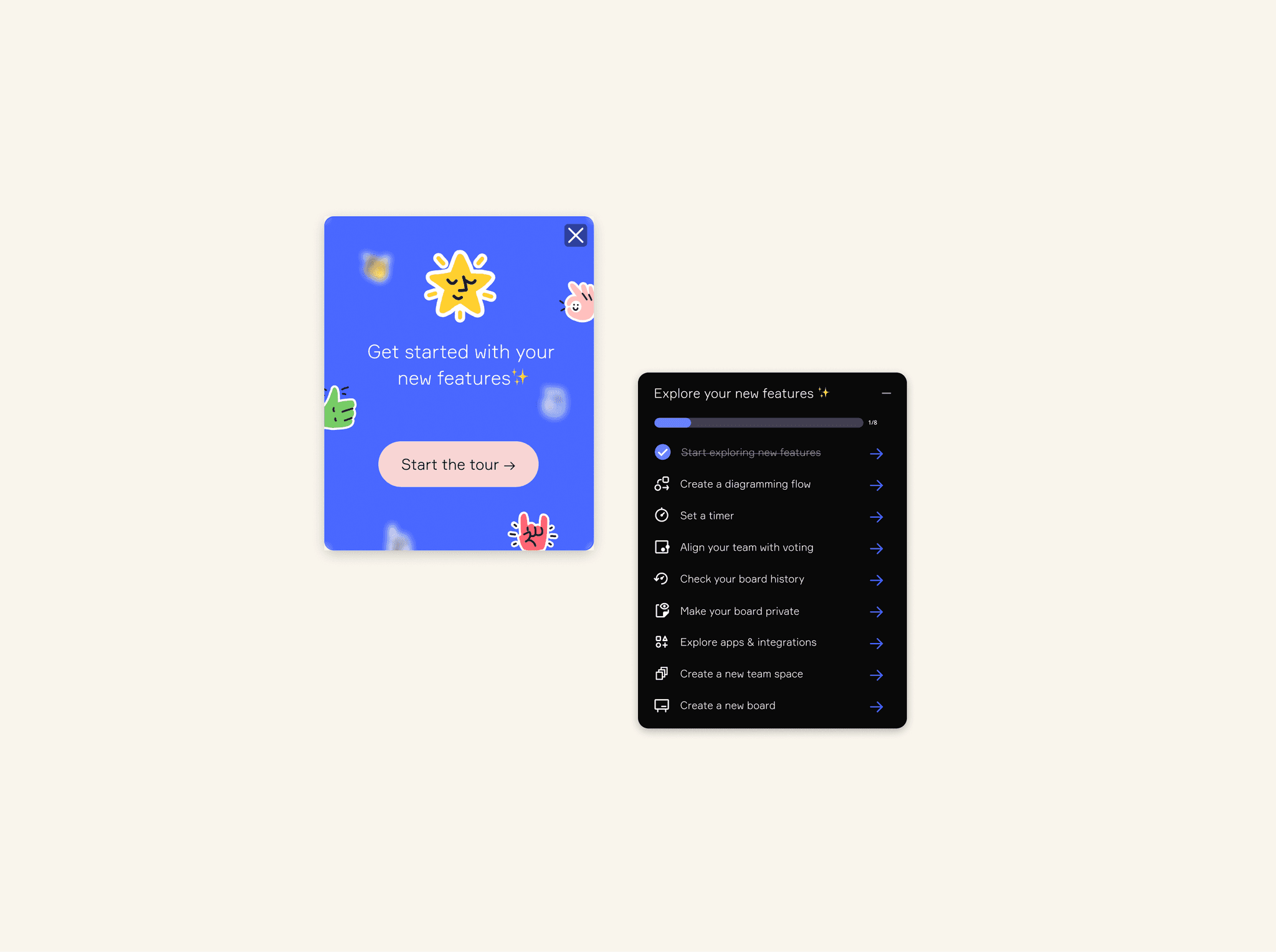 The redesign focused on simplifying the paid onboarding journey, ensuring clarity, and increase perceived value for users around what else Miro had to offer. By implementing growth design principles such as Zeigarnik effect combined with data-driven optimizations, the revamped flow successfully guided users toward faster activation and higher completion rates, driving better outcomes for both the business and customers.