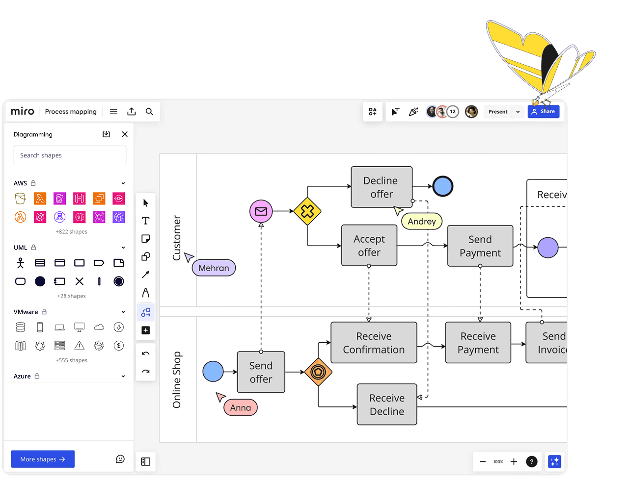 Enhanced smart diagramming discoverability by 9x, leading to a 43% increase in nARR and a 76% increase in user adoption.